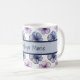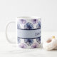 Pretty lavender and blue flowers decorate this coffee mug. Text can be changed. Image rendered with AI by IveyCottage.