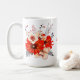 Style féminin avec de beaux bouquets floraux et feuillages en rouge vif et crème décorent l'avant et l'arrière, et personnalisent facilement avec un nom. Idéal aussi pour un cadeau !