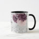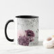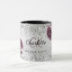 Un arrière - plan faux argenté décoré de fleurs bordeaux et roses. Personnalisez et ajoutez vos initiales monographiques, prénom et nom complet.