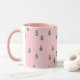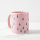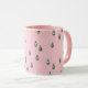 Illustration festive d'hiver minimaliste, avec des sapins enneigés et des épinettes sur un délicat arrière - plan rose pastel. Décor et cadeaux de Noël rose moderne