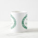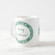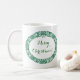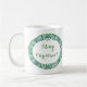 Un café de Noël chic Mug à customiser avec une couronne de Noël de saints, lierre, poinsettias, cônes de sapin et des branches de sapin. Cette couronne de Noël dessinée à la main est en vert de forêt sur un arrière - plan blanc que vous pouvez changer si vous le souhaitez, avec "Joyeux Noël" également en vert, que vous pouvez également changer.