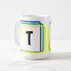 Initiale en gras lettre noire est encadrée par trois carrés de tailles décroissantes en bleu, vert et jaune. Même conception de part et d'autre. Personnalisez avec votre initiale.
