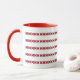 Image en forme de cravate arc est répliquée en 5 lignes autour de la tasse. Image rouge avec contour noir.