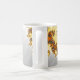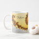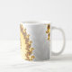 Cette tasse personnalisée présente une fractale en spirale colorée en jaune, orange et gris clair avec un nom personnalisable dans une police de script gris.