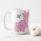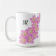Présente des fleurs frangipaniennes roses et jaunes dessinées à la main sur un arrière - plan blanc. Personnalisez avec vos initiales.