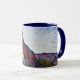 Mon oeuvre d'art numérique originale avec ma photo originale d'une statue de dinosaure dans le désert, d'un voyage en Arizona, est sur cette tasse funky. L'image a été traitée avec un effet d'imaginaire aquarelle pour un peu d'une apparence fantaisiste illustrée et fantaisiste. Il y a des rayons de soleil derrière pour montrer des bruits de rugissement. L'intérieur de la tasse et de la poignée sont un ton bleu pour compléter l'oeuvre d'art. Ce sont des tasses de 11 onces, juste la taille idéale pour votre café ou thé maison - ou même du chocolat chaud! Il ferait un grand cadeau et vous pouvez mettre des paquets de café, des sachets de thé ou du chocolat chaud à l'intérieur. Une autre idée de cadeau est de mettre un petit plante dedans pour le rendre spécial pour votre être cher. Il ferait aussi un cadeau amusant pour toute personne qui utilise sa voix extérieure tout le temps, ou un amoureux des dinosaures.