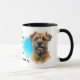 Un portrait en aquarelle d'un adorable perroquet frontalier est la caractéristique sur les deux côtés de cette tasse. Chaque image est placée sur un arrière - plan bleu vif. Entre les deux images est le texte qui décrit ce compagnon loyal et ludique, avec "le chien BORDER TERRIER" en noir au fond. Tout le texte est facilement customisé à tout ce que vous préférez afin que vous puissiez le personnaliser ou décrire votre propre ami loyal !
