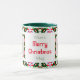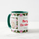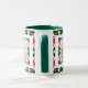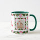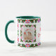 Custom Fun Jolly Noël Vert Motif Photo Photo Tea Coffee Mug. Dans les couleurs traditionnelles du rouge et du vert, avec des touches de violet chaud et d'orange vif ; dans un joli multicolore, motif maximaliste. Pour des boissons chaudes en hiver et un chocolat chaud gai lors de nuits douillettes en hiver. Changez les deux photos et le texte en vos propres photos et mots, pour célébrer les souvenirs de famille. Le texte par défaut dit "Mum’s Joyeux Noël Mug", en rouge et vert. Achetez comme un cadeau de table de gardien de fête à petit prix pour elle ou ses grands-parents.
