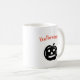 Belle tasse à café Halloween, cool et dingue ! Citrouille noir et le mot légèrement courbé Halloween en orange.