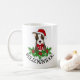 Amusant Chien de taureau Personalisé Français Santa Hat Coffee Mug. Il a le mignon chien dit Feliz navi.