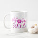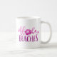 Cette tasse à café amusante présente l'image textuelle "Plages Aloha" en parties scintillant sombre rose et personnalisée avec votre nom le long du côté, ou supprimer le nom pour un look propre.