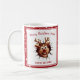 Mignonne tasse de Noël avec le drôle Rudolph le renne qui se brise. Arrière - plan de neige rouge. Personnalisez facilement cette tasse de Noël avec votre propre texte. - Kate Eden Art.