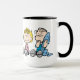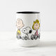 Regardez Lucy, Charlie Brown, Snoopy, Sally, et Linus assis ensemble dans une rangée.