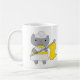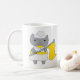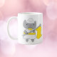 Aimez-vous le gardien de couleur ? Cette mignonne tasse est ornée d'un chat gris avec un drapeau jaune portant une tenue de garde couleur jaune et blanc.