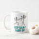 Garder le calme L'escrime montre deux enclos en duel au-dessus d'un jeu de mots humoristique "Gardez le calme et la parade !".