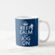 Cette conception lit "gardent le calme et pulsent sur" dans le style du classique gardent l'affiche calme. Il y a un trotteur/coureur fonctionnant sur les mots. C'est une belle conception, disponible sur une gamme des produits entière, faisant les cadeaux parfaits pour des coureurs partout.