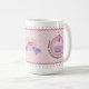 Dites à une dame spéciale que vous pensez à elle avec cette tasse de la Saint-Valentin qui présente une illustration de cupcakes roses et violets, de cœurs avec des messages personnalisables, de charmants oiseaux bleus, de pois ludiques et d'une bordure à festons tendance. Modifiez le texte pour créer un cadeau de Saint-Valentin unique pour votre petite amie, votre chérie, votre mère ou votre belle-mère.