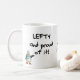 Un pingouin mignon de bande dessinée avec sa nageoire gauche se dirigeant au texte noir qui lit "gauchiste et fier de elle !". Même le pingouin est gaucher !