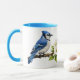 Apportez une touche d'élégance naturelle à votre maison avec cette illustration magnifiquement détaillée du geai bleu. Perché avec grâce sur une branche de délicates fleurs blanches, le plumage bleu vif de l'oiseau et les motifs complexes de ses plumes créent un contraste saisissant avec les accents floraux doux.