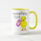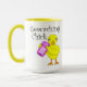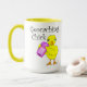 Geocaching chick in curly text with a mignon jaune chick tenant un récepteur GPS est une conception humoristique de cadeau géocaching pour les cachers lors des anniversaires, des fêtes et des événements géocachage.
