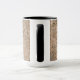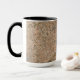 Une photo délicate de texture rocheuse couvre la majeure partie de cette tasse. En face de la poignée, il y a une bannière de nom vertical semi-transparente. La bannière est noire, et le texte est gris clair à brun clair. Le nom et la bannière peuvent être facilement customisés ou repositionnés. Vous pouvez également ajuster la police, la taille et la couleur du texte.