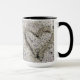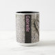 Photo délicate d'un coeur dessiné sur une plage de sable. La photo couvre la majeure partie de cette tasse. En face de la poignée, il y a une bannière de nom vertical semi-transparente. La bannière est noire, et le texte est gris clair à brun clair. Le nom et la bannière peuvent être facilement customisés ou repositionnés. Vous pouvez également ajuster la police, la taille et la couleur du texte.