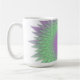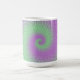 Make a bold statement with this striking geometric spiral design. Featuring layered, radiating spikes that draw the eye inward, the artwork blends soft gradients of purple and mint green against a dramatic black background. The result is a mesmerising, almost hypnotic effect that feels both modern and dynamic.