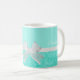 Mug Girl Aqua Turquoise Damask Ruban blanc avec nom