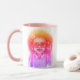 Girl with glasses - Start your day with a splash of color and confidence! This two-toned mug features a sweet and stylish illustration of a young girl with glasses and big curly hair, all in vibrant pink, orange, and purple hues. A fun and empowering sip every time! 💕☕✨