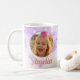 Celebrate special moments with this adorable personalized mug! Featuring a vibrant purple watercolor background with delicate sparkles, this mug beautifully showcases a cherished photo of a child and their name. It's the perfect keepsake for birthdays, holidays, or just to make an everyday sip extra special. Ideal for girls, this custom mug makes a thoughtful and unique gift that will bring a smile to their face with every use. A wonderful way to commemorate milestones and create lasting memories.