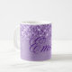 Parties scintillant brillante imitation filée sur un art numérique en feuille métallique violet clair. Customisez le style classique de police de calligraphie, la taille, la couleur et la chute de couleur ombre pour créer votre propre tasse de café. Une calligraphie classique et élégante sur l'art numérique moderne qui imprime comme une photo.