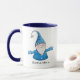 Mignonne tasse de Noël personnalisée avec gai en bleu.