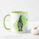 Cette tasse de vacances amusante a un elfe de gnome mignon habillé en vert avec une longue barbe et un casquette de flocon de neige. Il tient une étoile dorée et est placé sur un arrière - plan d'aquarelle vert clair. L'image est répétée de deux côtés de la tasse. Votre texte personnalisé est en rouge et vert au centre entre les deux images, et vous pouvez personnaliser le champ de texte du bas avec votre nom. Cela fait aussi un grand cadeau de vacances ou de bureau!
