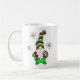 Gnome est là où le café est mignon tasse de café de Noël avec un gnome dessiné à la main tenant une tasse de café. Au verso la citation.