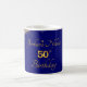 A stunning milestone 50th Birthday celebration mug. The vibrant navy blue and gold party design gives off a rich, luxurious atmosphere and is suitable for all genders.