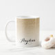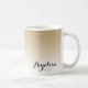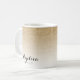 Cette tasse personnalisée présente un dessin à l'ombre de parties scintillant d'or avec votre nom personnalisé dans une jolie typographie de script. Note : L'effet parties scintillant or est réalisé avec une image imprimée et n'est pas une parties scintillant réelle, encre métallique ou feuille.