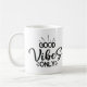 Sirotez sur la positivité ! Cette chic tasse en céramique comporte le message "Good Vibes Only", parfait pour apporter un peu de joie à votre quotidien. Idéal pour le café, le thé et la diffusion de bonne énergie.