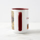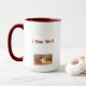 15 onces. tasse avec des images de chat blanc/gris/noir sur son coussin et sur le placard regardant vers le bas. La deuxième image a une légende "que je vous vois".
