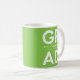 Tasse à café moderne graduation avec "Grad" en lettres blanches en gras avec un arrière - plan vert citron ou couleur de votre choix. Personnalisez la tasse de graduation en ajoutant le nom et l'année de graduation du diplômé. La tasse à café est un cadeau de remise de diplômes très personnalisé pour les diplômés du secondaire et du collège!