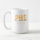 Une grande tasse de doctorat qui indique le nom du diplômé, le domaine d’études et la date de fin d’études. La tasse inclut le nom dans une police de script manuscrite et un design orange et noir. C’est un grand plaisir pour un gardien ou une fête. Ajoutez simplement les infos du diplômé, ajoutez cette tasse à votre panier, et félicitations pour cette étape majeure ! Graduate Keepsaké orange Noir Nom PhD Grand café Mug Conception de jour férié | ©Melissa Patton - Designer