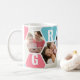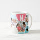 Canette à café Honeypeb, personnalisée avec 5 de vos photos préférées et imprimée avec un nom de 4 lettres, comme GRAN. Le design comprend un collage photo en nid d'abeille dans une jolie palette de couleurs de rose d'été et d'albâtre, avec une petite abeille mignonne. Si vous souhaitez modifier les couleurs, cliquez sur "customiser plus loin" et cliquez sur chaque hexagone que vous souhaitez modifier.