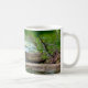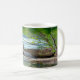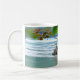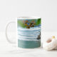 Une belle scène d'un grand héron bleu sur le rivage sur ces stupéfiantes tasses à café.