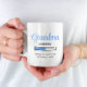 Cette adorable tasse à café Grandma bleue et blanche est parfaite pour la surprendre avec votre faire-part de grossesse. C'est une excellente idée pour la grand-mère qui aime la technologie.