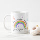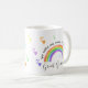 Tasse colorée avec arc-en-ciel et coeur d'amour que vous pouvez personnaliser pour votre arrière grand-mère, nana ou n'importe qui que vous souhaitez. Design mignon et joyeux avec en lettres "vous faites de mon monde un endroit heureux" dans la typographie de style manuscrit et élégant script.