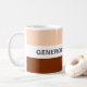 Le design comporte deux bandes de pêche et brun avec une police classique en gris lisse. Le message dit : Grand Grand Généreux qui peut être facilement changé.