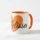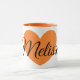 L'orange de couleur symbolise la créativité, le succès, l'amusement, la joie et beaucoup d'autres bonnes choses ! C'est une grande copie orange magnifique de coeur sur la tasse de café personnalisée par blanc ! Fera une grande idée de cadeau pour n'importe quel amant de café ! Ajoutez juste son nom !