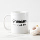 Créez un gardien de chéri pour grand-mère avec ce coeur décoratif soulignant votre bébé faire-part à votre mère/Personnalisez avec l'année où vous lui avez donné son premier petit-enfant. Écriture manuscrite typographie noire moderne. Achetez avec le mamelon Grandpa est. année. Fait un grand cadeau de fête des mères ou de faire-part de grossesse.
