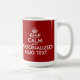 Grands surdimensionnés faits sur commande gardent les tasses de café enormes calmes. Grands coffeemugs de grande taille supplémentaires personnalisés de KeepCalm. Modèle de Personalizable avec la typographie vintage et la couronne. Anniversaire ou idée mignon de cadeau de faveur de mariage pour les hommes et des femmes. L'arrière - plan de personnaliser colore l'IE rouge foncé. Créez votre propre tasse drôle de parodie de KeepCalmandCarryOn. Éditez simplement le texte de ce modèle pour faire votre propre unique garder le calme et continuer la conception. Citations et énonciations humoristiques : Maintenez thé calme et de boissons. Gardez le calme et aimez-moi. Maintenez calme et buvez du café. Les tasses personnalisées sont une grande idée de cadeau pour des amis et famille.