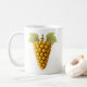 Ce mug blanc est décoré d’une grappe de raisin jaune doré, aux grains brillants et parfaitement arrondis. L’image se distingue par son éclat lumineux, ses feuilles vertes détaillées et son rendu illustré net. Le contraste visuel entre le jaune vif des fruits et la sobriété du mug crée un effet graphique attrayant et original. Ce design fruité donne une identité forte et moderne à ce mug élégant.
