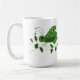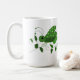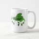 Un design cool avec une sauterelle verte et élégante parmi les feuilles verts et les vignes. Une tasse à café d'inspiration nature.